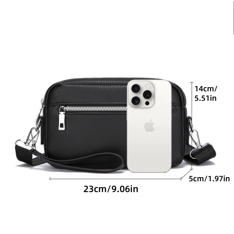 "Ce sac à main pour hommes est une véritable réussite ! J'en suis vraiment ravi. La matière est de très haute qualité, ultra résistante et l'étanchéité est parfaite. J'apprécie également la grande capacité du sac qui me permet d'y ranger tous mes effets personnels sans problème. Le design est tendance et élégant, ce qui en fait un accessoire aussi pratique que stylé au quotidien. Le seul petit bémol serait que la bandoulière pourrait être un peu plus rembourrée pour plus de confort lors de longues utilisations. Mais dans l'ensemble, c'est un achat que je recommande sans hésiter !"
