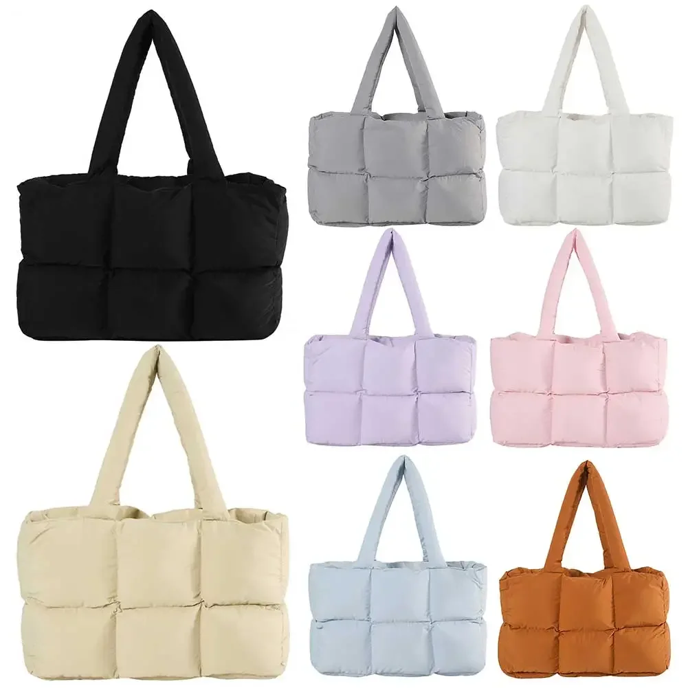 Sac à main rembourré pour femmes, couleur unie, matelassé, sac à bandoulière simple, grande capacité, fourre-tout nuage doux, sacs de transport tendance |