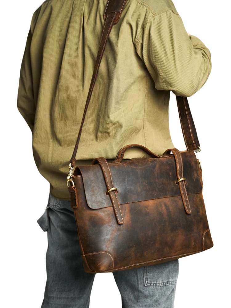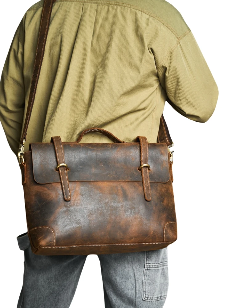 Sac à Main Rétro en Cuir group de Grande Capacité pour Homme, Sacoche Décontractée pour Ordinateur Portable, Chili Bull
