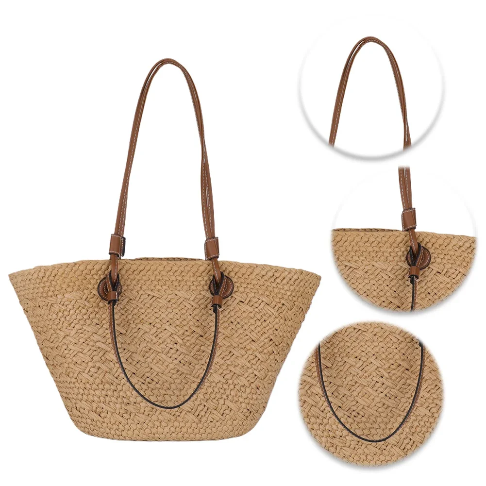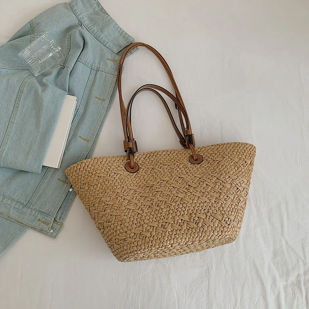 Sac à main tissé pour femmes, fourre-tout à la mode, initié, grande capacité, été, plage, simple, tissé, chic, hobo, voyage en plein air