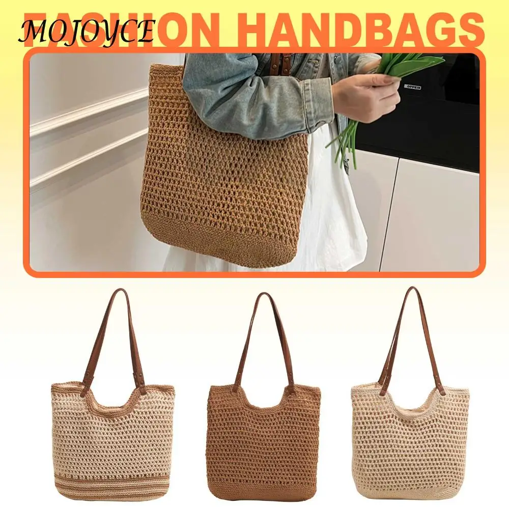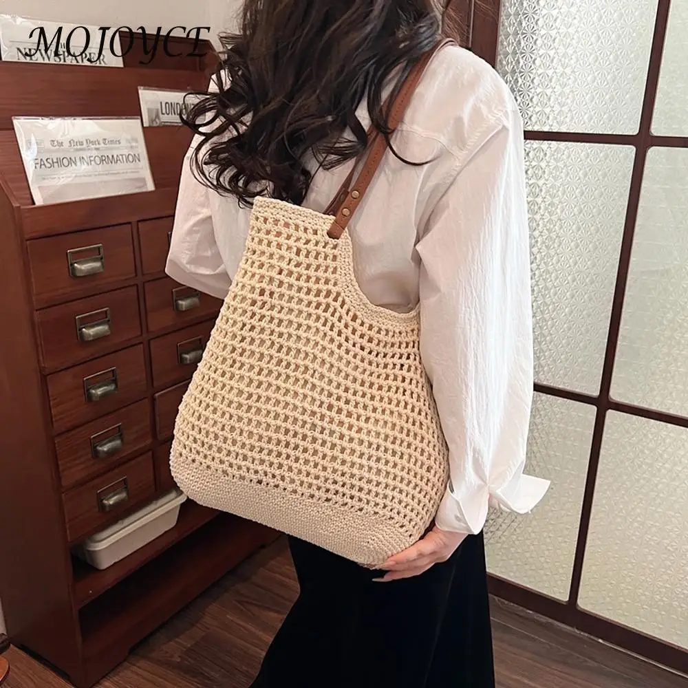 Sac à main tissé pour femmes, fourre-tout décontracté de grande capacité, couleur unie, sac tressé ajouré, sac de voyage de plage d'été |