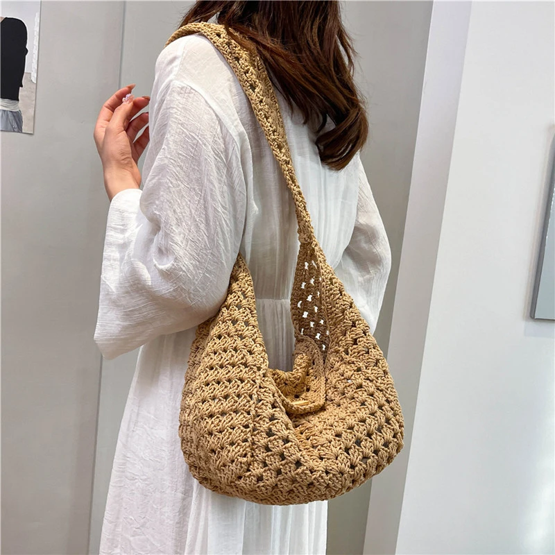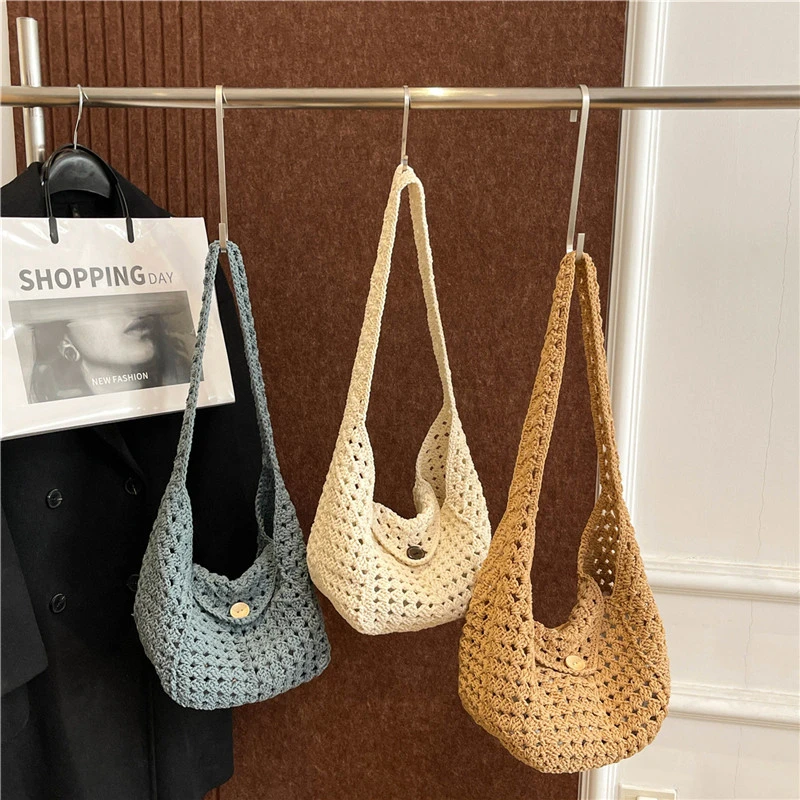 Sac à main tricoté à la main pour femmes, sac à bandoulière Simple kaki Beige bohème, réutilisable, Style japonais, sac de voyage décontracté |
