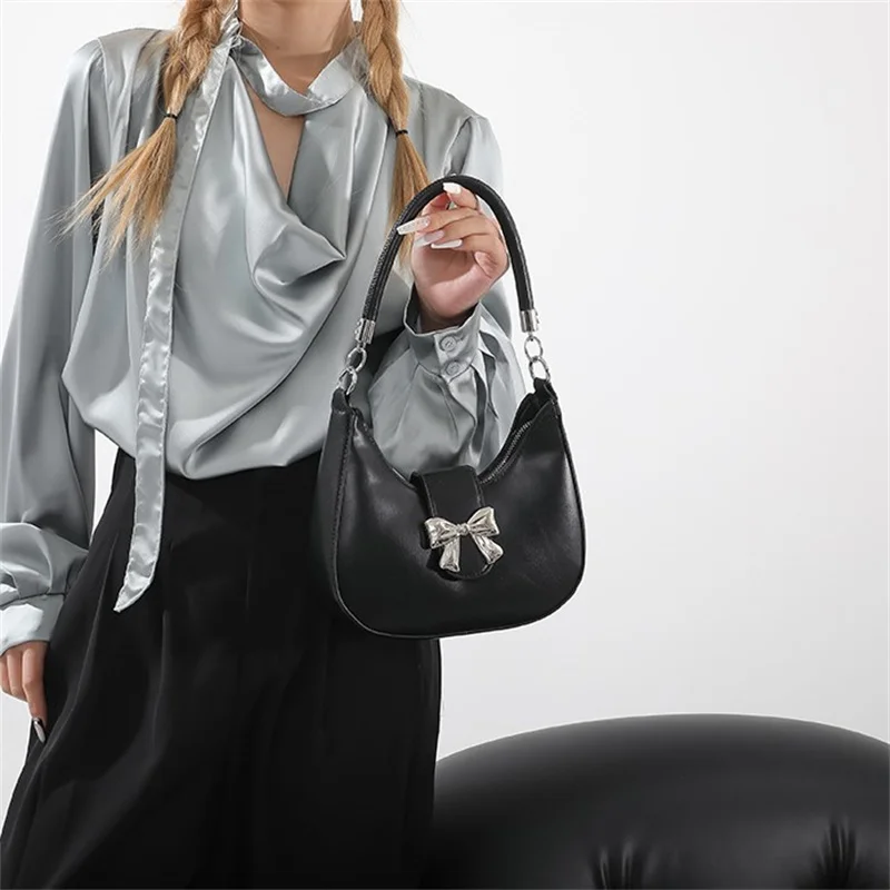 Sac à nœud papillon pour femmes, sac à main à double usage à bandoulière et sous les bras, sac à chaîne de couleur unie |