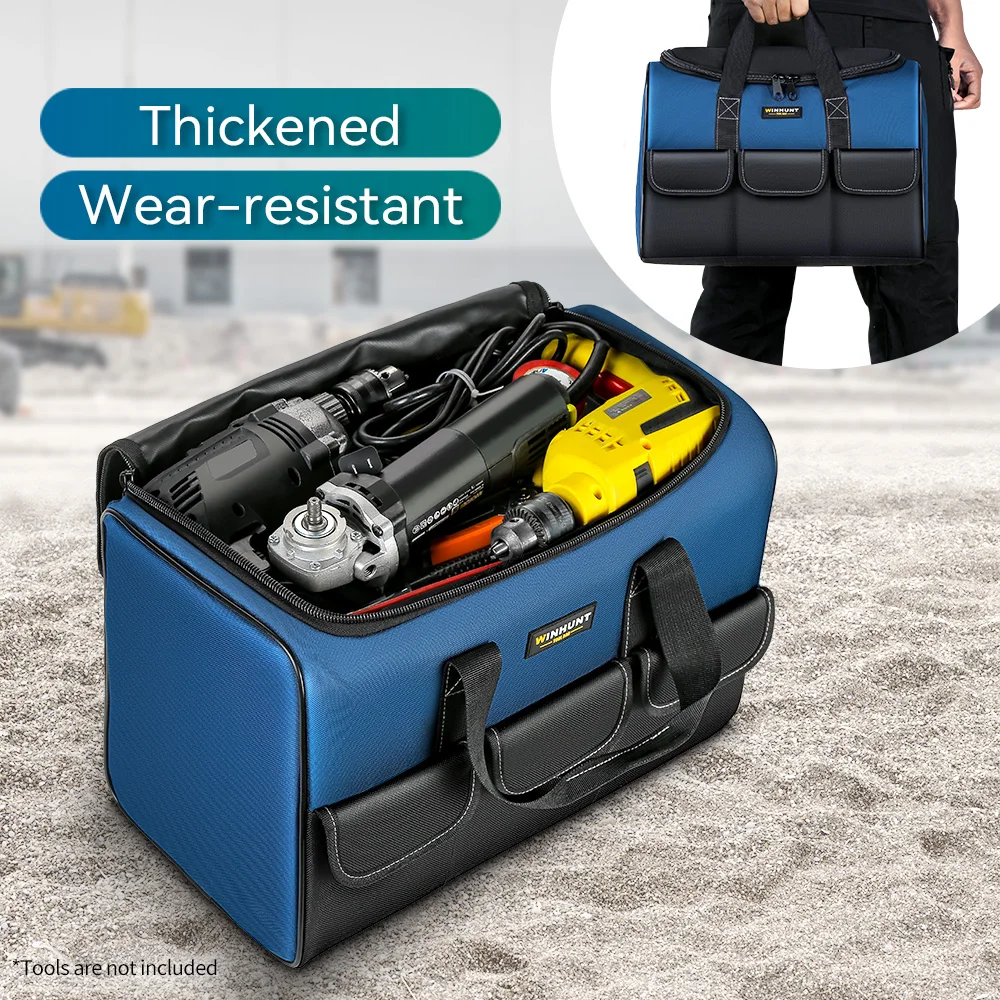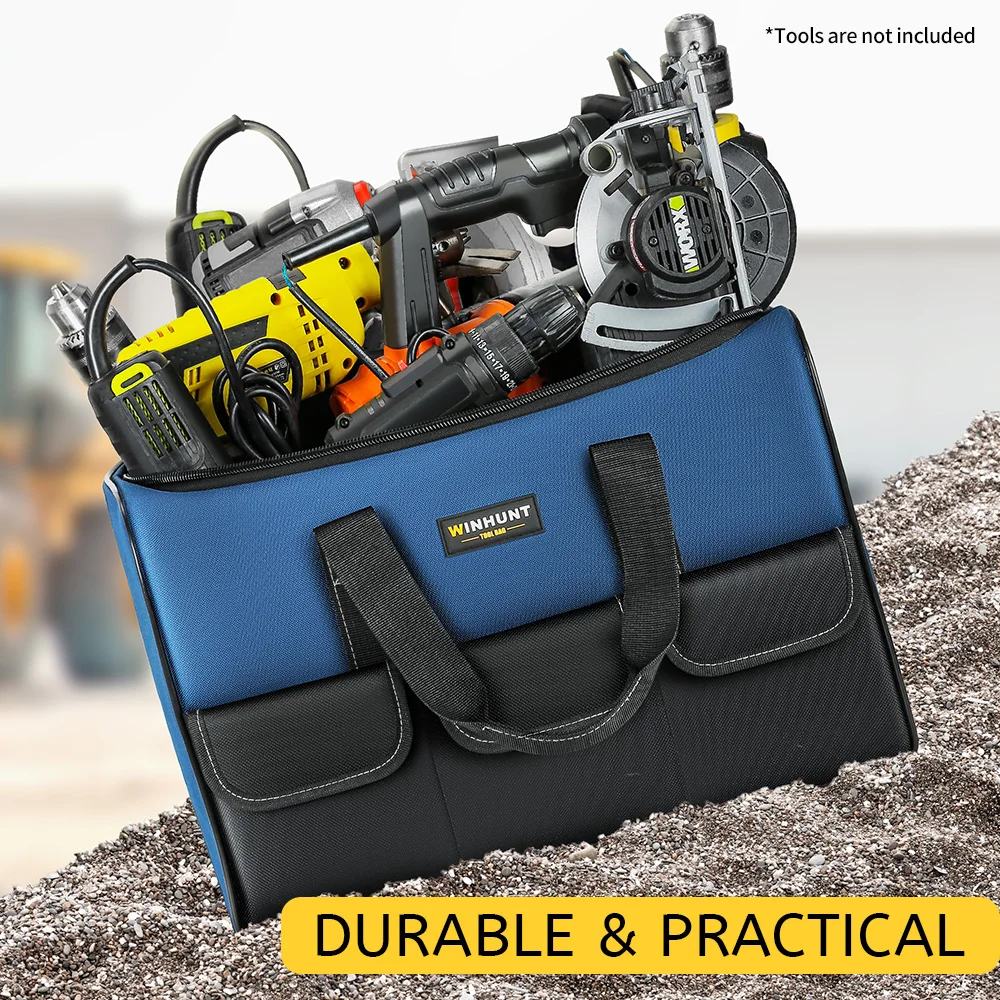 Sac à outils robuste à bouche large avec poches, organisateur pour le stockage et le transport d'outils pour hommes |