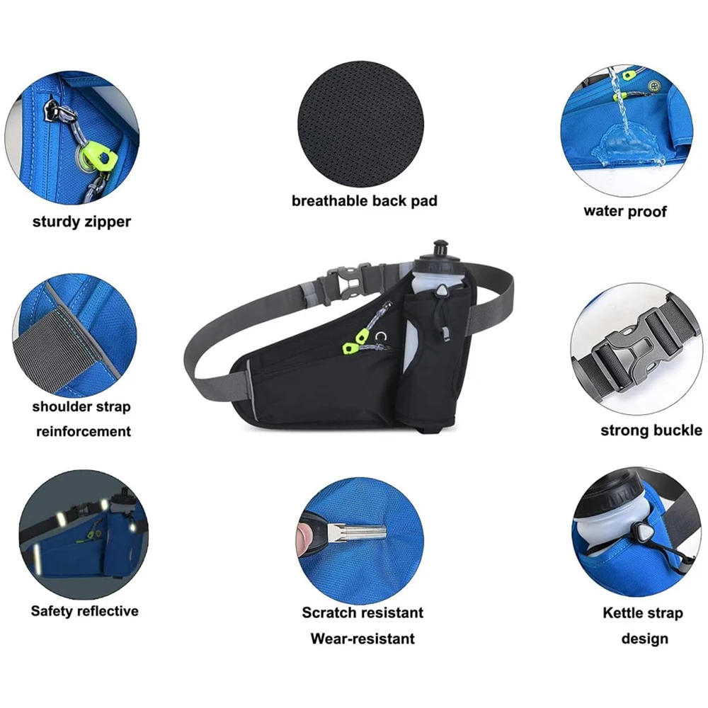 Sac banane avec porte-bouteille d'eau, sac à bandoulière avec sangle d'extension, ceinture de course, sac de taille d'hydratation pour la marche et la course |