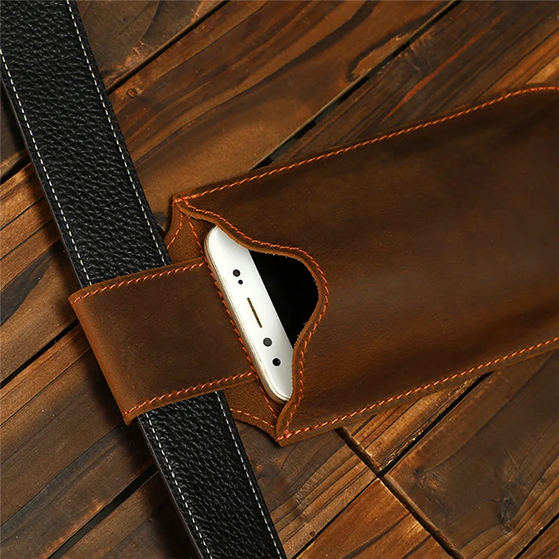 Sac banane en cuir véritable pour hommes, Mini boîte de téléphone portable rétro, pochette d'extérieur |