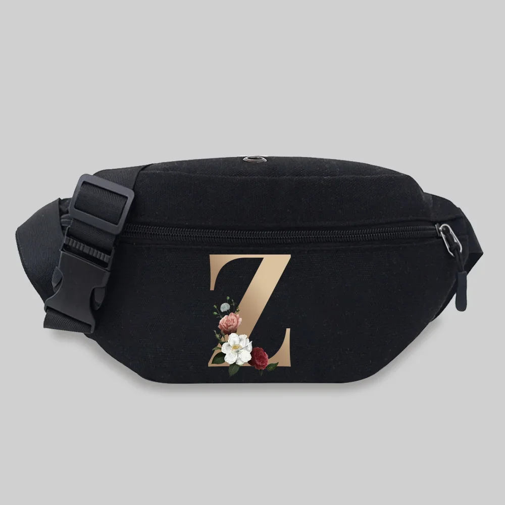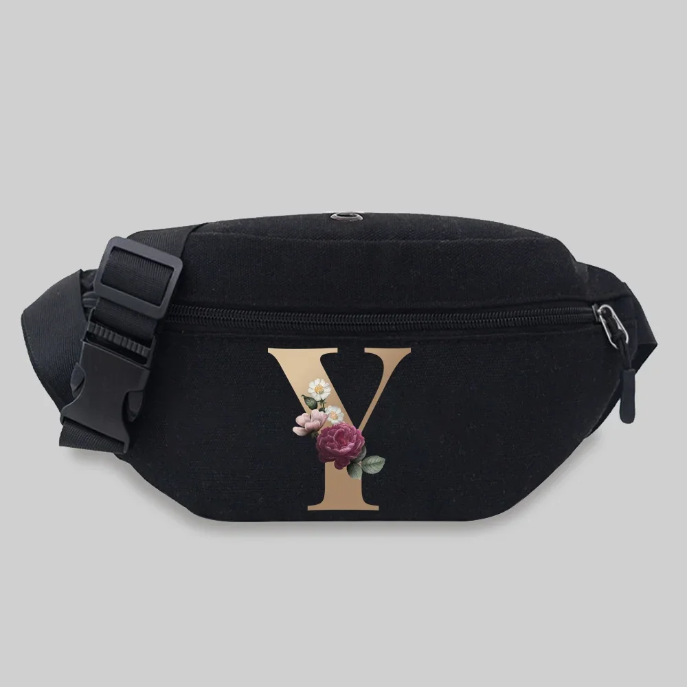 Sac banane en toile pour téléphone portable, sac banane populaire pour étudiants, série de motifs de lettres dorées, sac de taille Messenger, sacs de sport de loisirs
