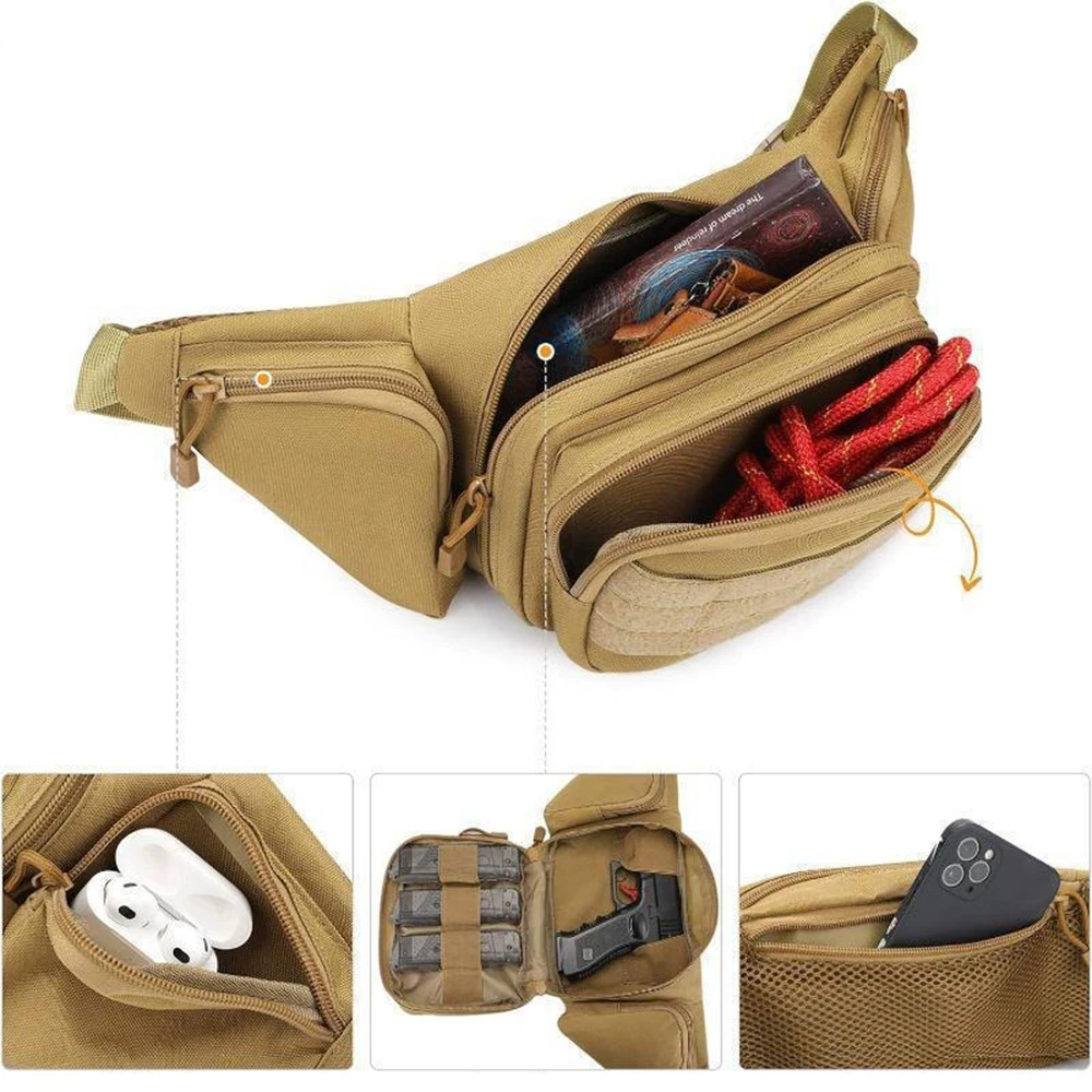 Sac banane tactique d’extérieur en Nylon multi-compartiments, équipement de chasse, Camping, escalade, téléphone, pistolet, Magazine, rangement, sac de taille