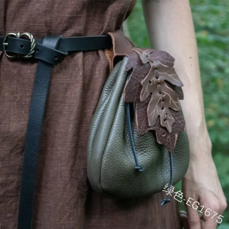 Sac de ceinture de taille médiéval européen, sac de ceinture en cuir à motif de feuille pour femmes, sacs de poche Vintage Pixie elfe Viking, accessoire de Costume |