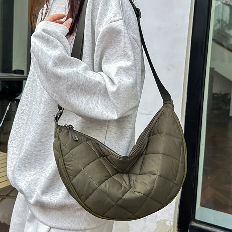 Sac de ceinture demi-lune, sac à bandoulière de couleur unie, sacs à bandoulière de grande capacité, sacs de voyage portables à carreaux en Nylon pour les déplacements quotidiens |