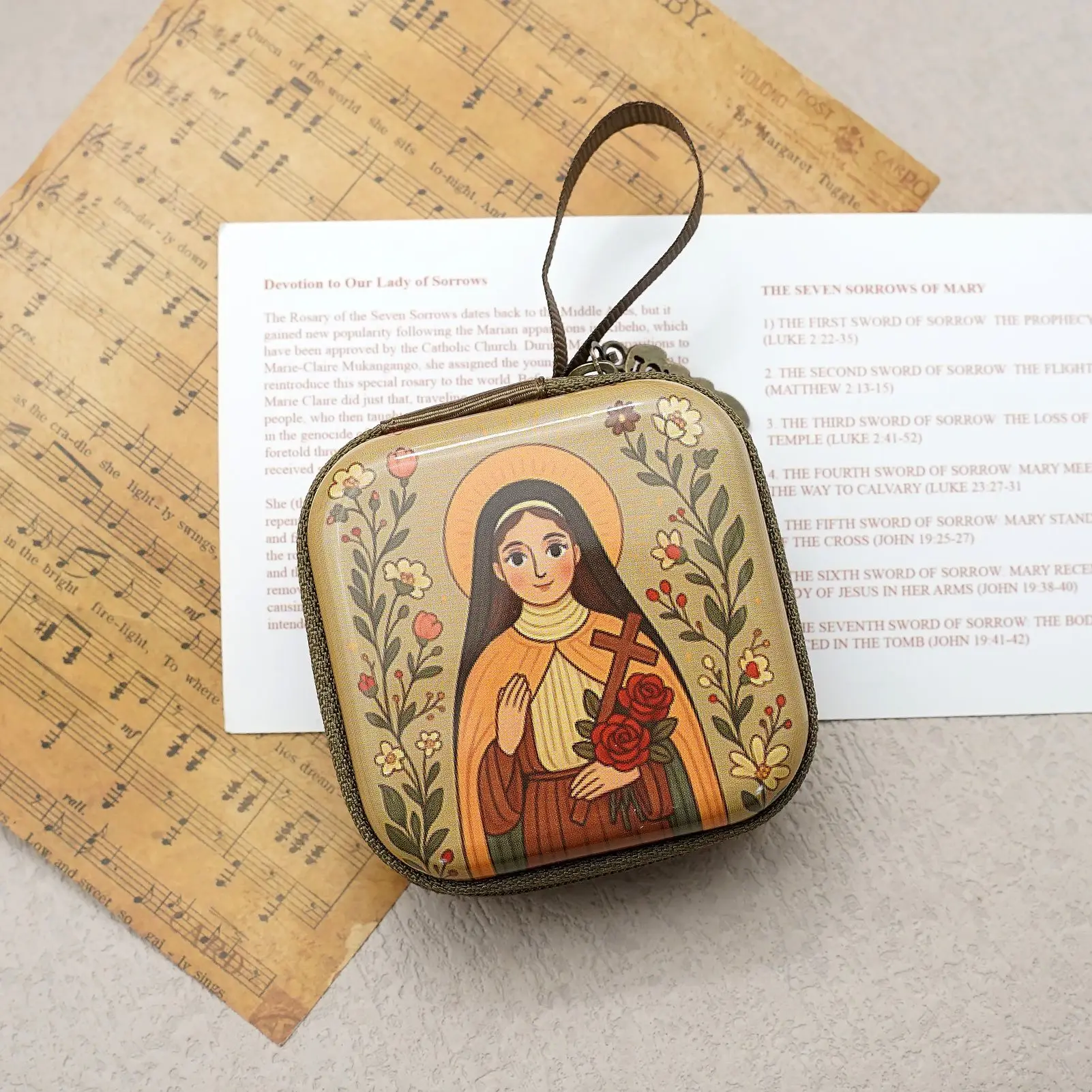 Sac de chapelet de prière vierge marie jésus, boîte de rangement de bijoux religieux, perles de prière, boîte de chapelet, cadeaux chrétiens pour femmes et hommes 7x7cm |
