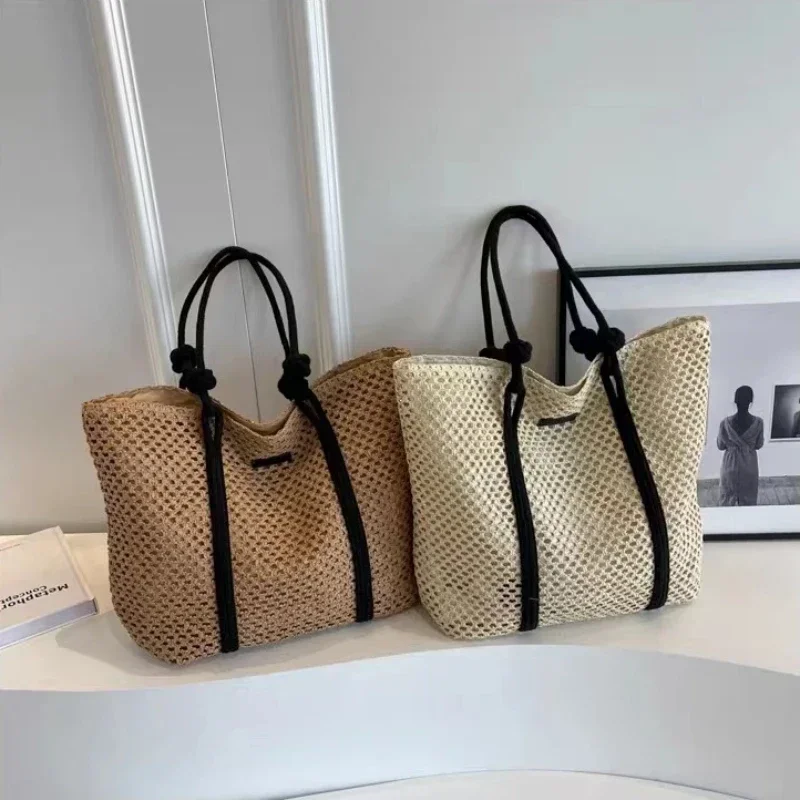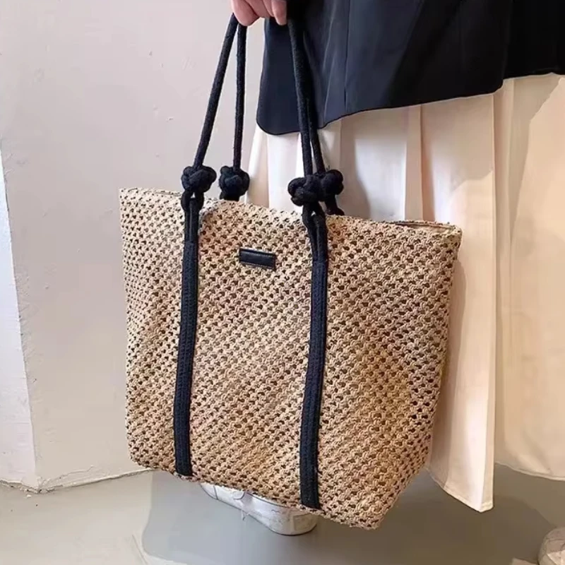 Sac de plage en paille élégant pour femmes, sac à main tissé de vacances, fourre-tout décontracté à poignée supérieure, sacs à bandoulière sous les bras à la mode