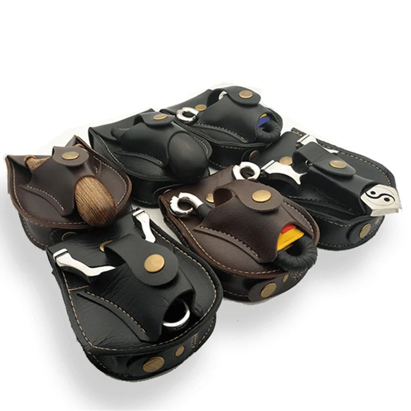 Sac de rangement de transport de boule d'acier de fronde noir/marron, sac de taille intégré multifonctionnel en cuir fait à la main à aspiration magnétique |