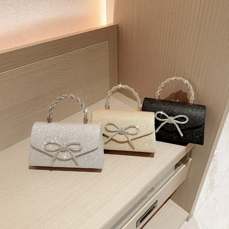 Sac de soirée robe polyvalent européen et américain pochette bandoulière célébrité mode diamant arc chaîne sac dame sac à main |