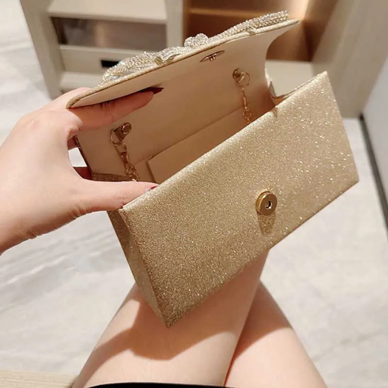 Sac de soirée robe polyvalent européen et américain pochette bandoulière célébrité mode diamant arc chaîne sac dame sac à main