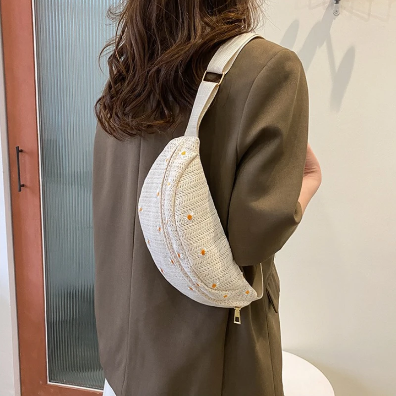 Sac de taille en paille tissé pour femmes, sacs à bandoulière pour dames, sac banane d'été 2025, sac de poitrine pour téléphone à la mode |