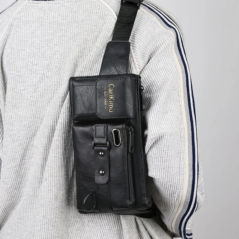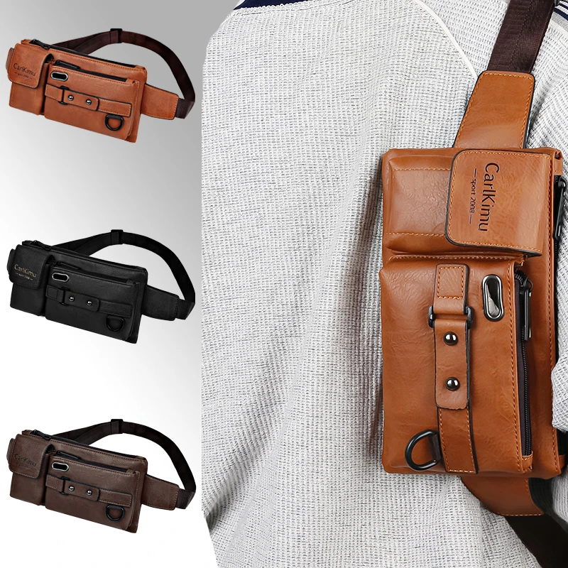 Sac de taille pour hommes en matériau PU, conçu très cool, adapté aux voyages d’affaires, sac à bandoulière simple
