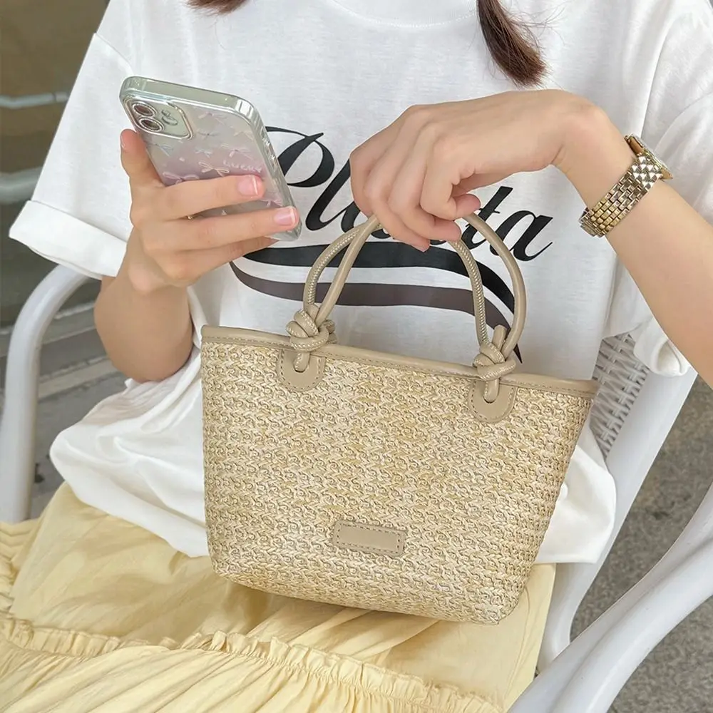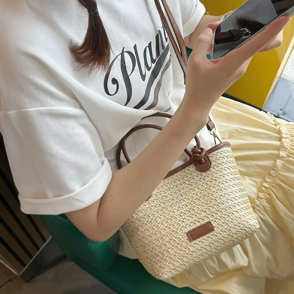 Sac en paille tissé d’été élégant, style bohème, loisirs, plage, vacances, sac seau pour femmes/filles