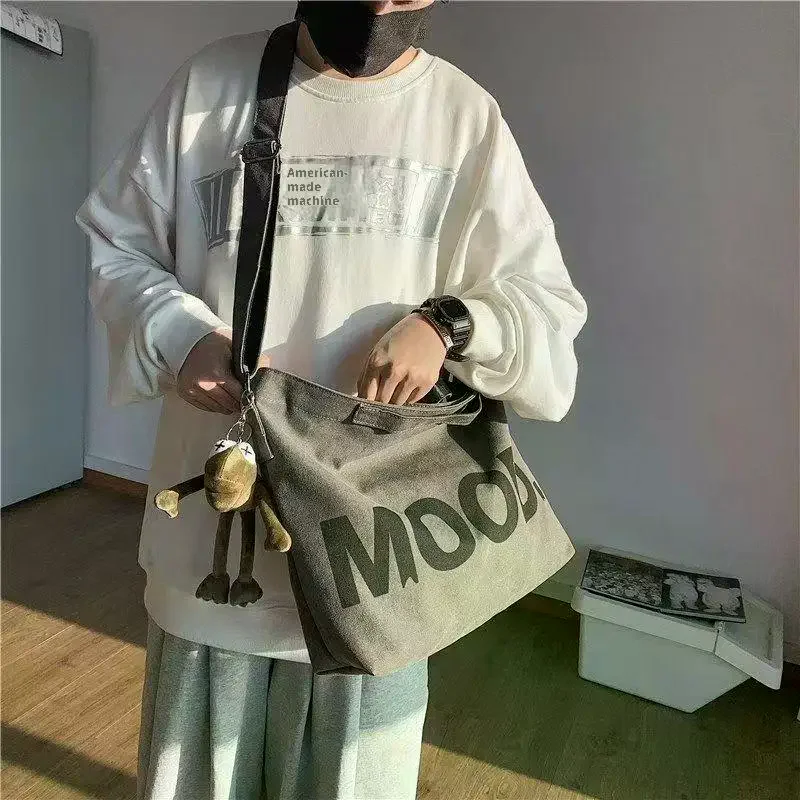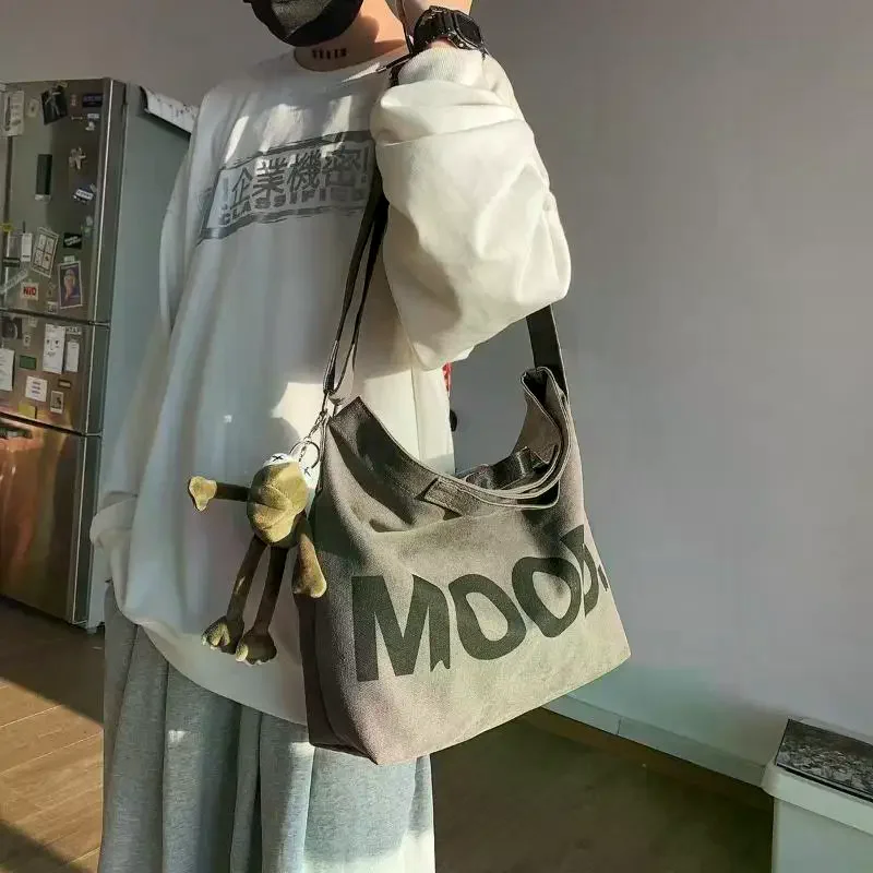 Sac en toile Chic pour jeunes et hommes, sac à bandoulière de grande taille avec motif de lettres, sac à bandoulière idéal pour femmes et étudiants 1 pièce
