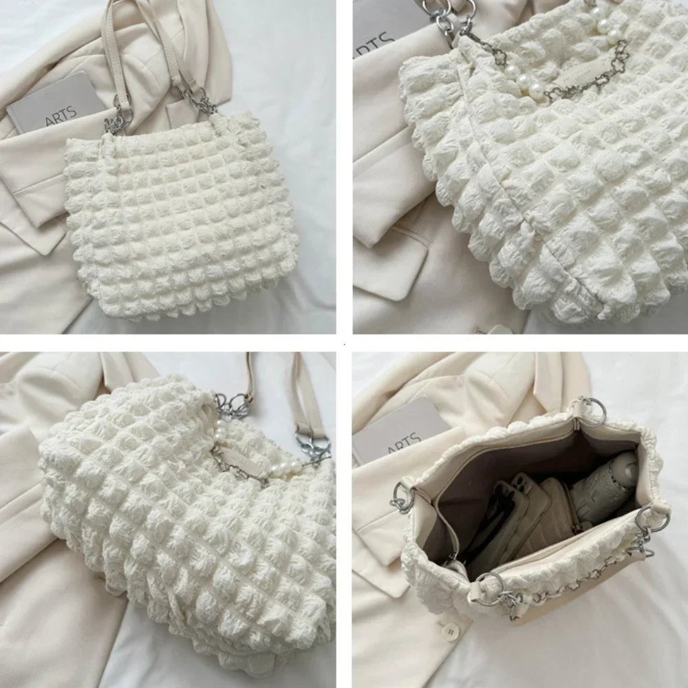Sac fourre-tout de grande capacité pour femmes, fourre-tout à carreaux avec chaîne perlée, sacs à bandoulière en tissu doux, sacs à main de banlieue, 2024 |