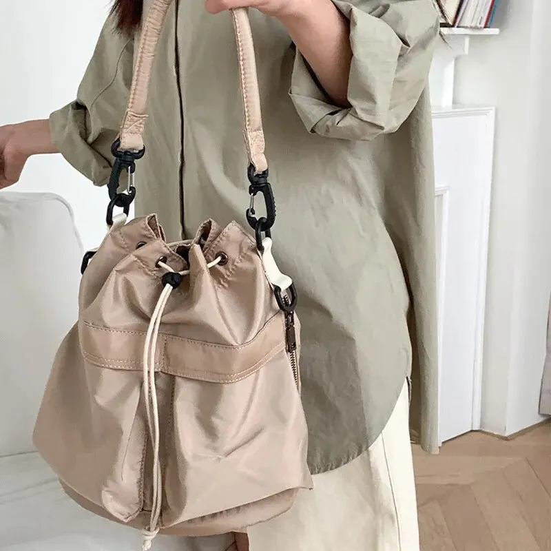 Sac fourre-tout pour femmes, sac à bandoulière en Nylon imperméable de grande capacité, sac à main avec cordon de serrage