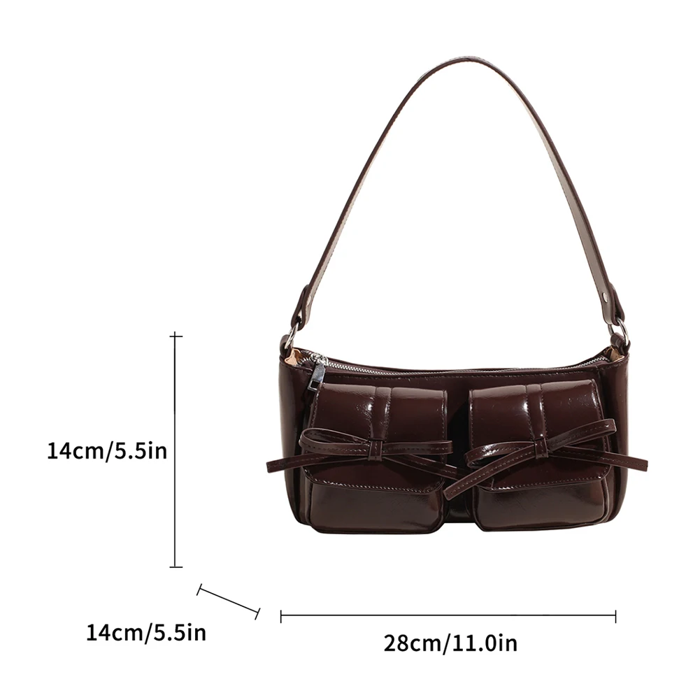 Sac sous les bras élégant avec nœud pour femme, avec Double poches, bandoulière réglable en cuir PU pour le travail, les voyages et les achats