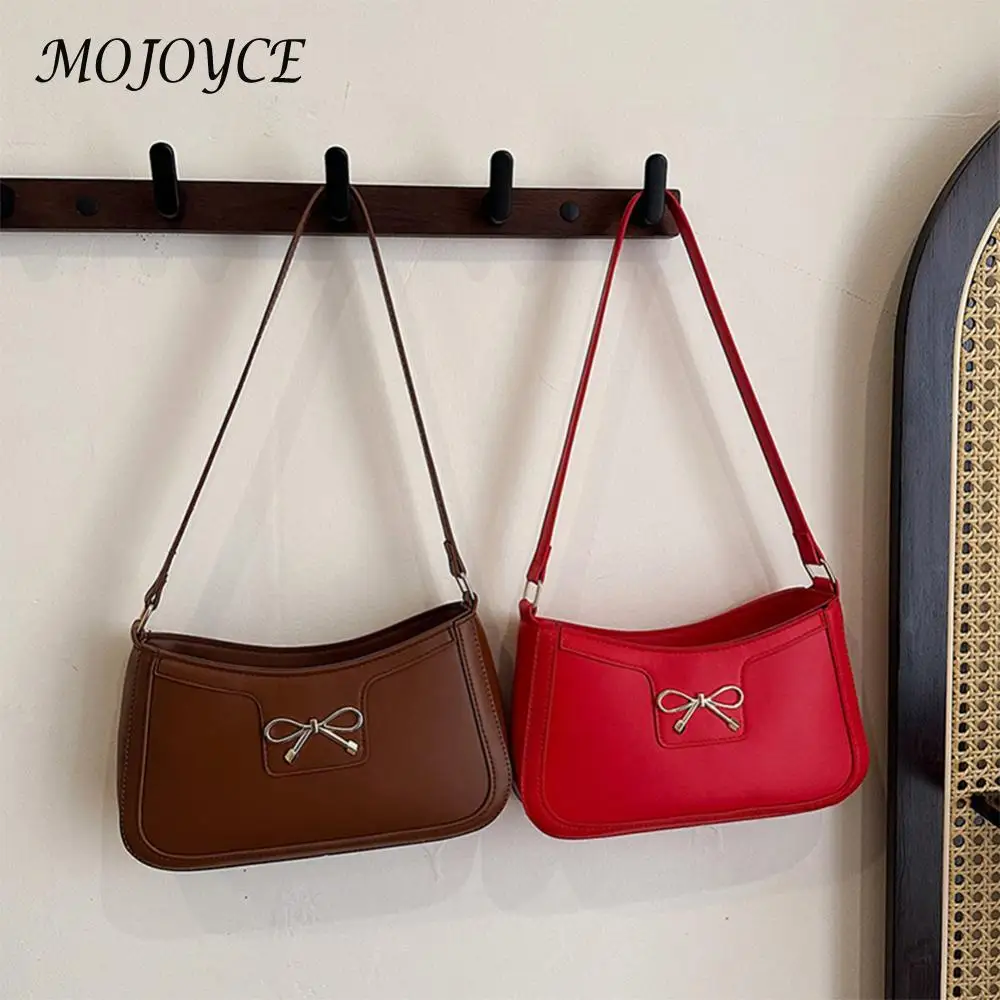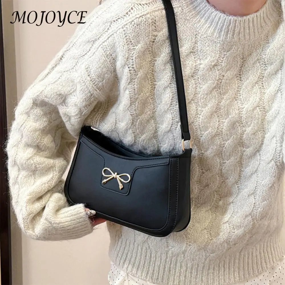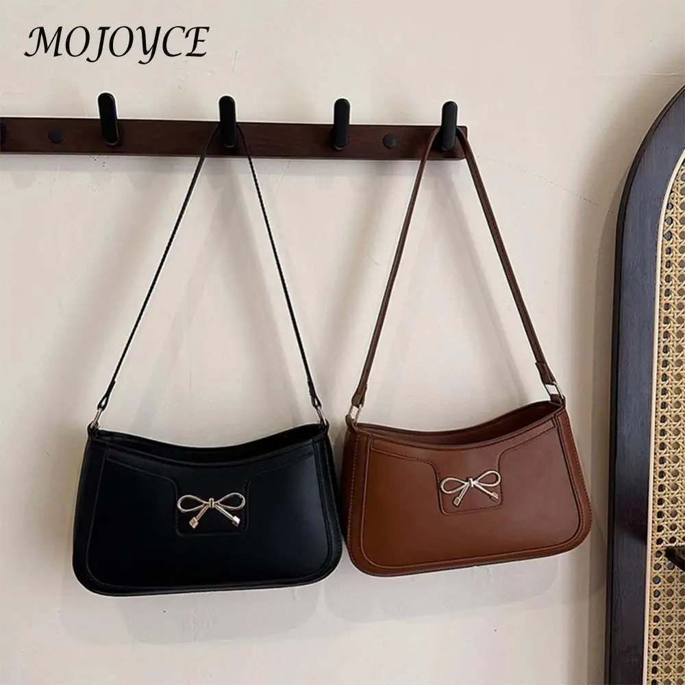 Sac sous les bras en cuir PU pour femmes, sac à bandoulière tendance, couleur unie, sac à bandoulière avec nœud papillon, sac de transport pour femmes