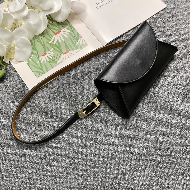 Sac suspendu en cuir fin, sac à double usage avec ceinture, sac à bandoulière en cuir de vache associé à un costume, sac de taille à ceinture fine |