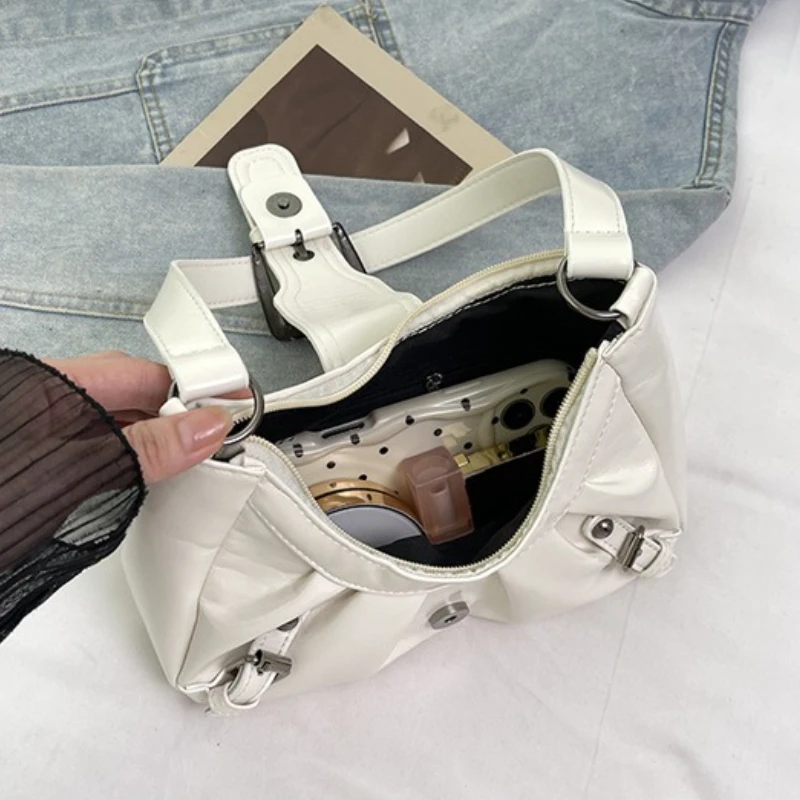 Sacs à bandoulière en cuir PU pour femmes, Design plissé avec ceinture, Style Y2K, sac sous les bras Simple pour dames, sacs à main décontractés tendance