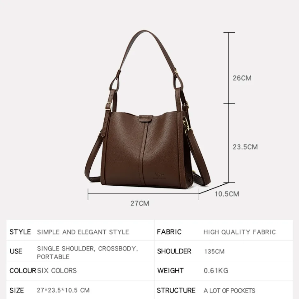 "Ce sac à main est vraiment une excellente acquisition. La qualité du cuir est exceptionnelle et il est très bien fini. J'apprécie particulièrement la taille pratique et les nombreux compartiments qui me permettent de bien organiser mes affaires. La seule petite déception est que la couleur est légèrement plus foncée que sur les photos, mais cela ne me dérange pas. Dans l'ensemble, c'est un sac très élégant et fonctionnel qui me fait totalement craquer !"