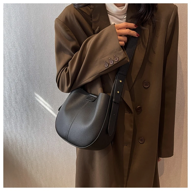 Sacs à main Vintage pour femmes, sac à bandoulière en cuir PU souple avancé, fourre-tout seau de grande capacité, large sangle unique |
