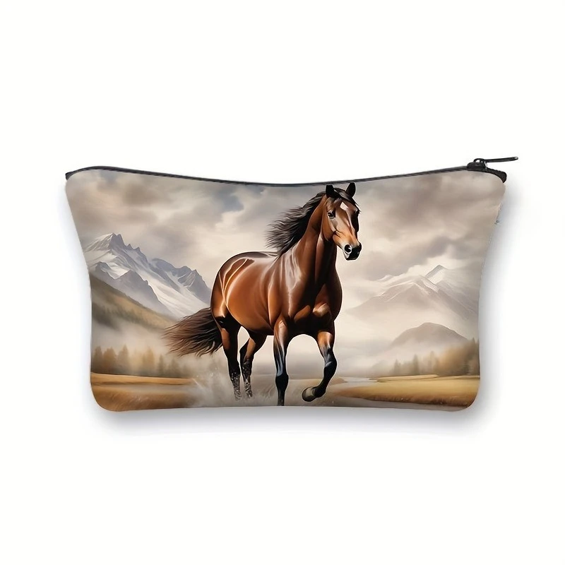 Sacs de maquillage élégants imprimé cheval, pochettes de rangement de cosmétiques en Polyester pour femmes, sac essentiel de voyage, porte-monnaie