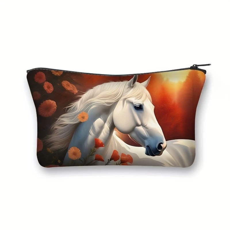 Sacs de maquillage élégants imprimé cheval, pochettes de rangement de cosmétiques en Polyester pour femmes, sac essentiel de voyage, porte-monnaie |