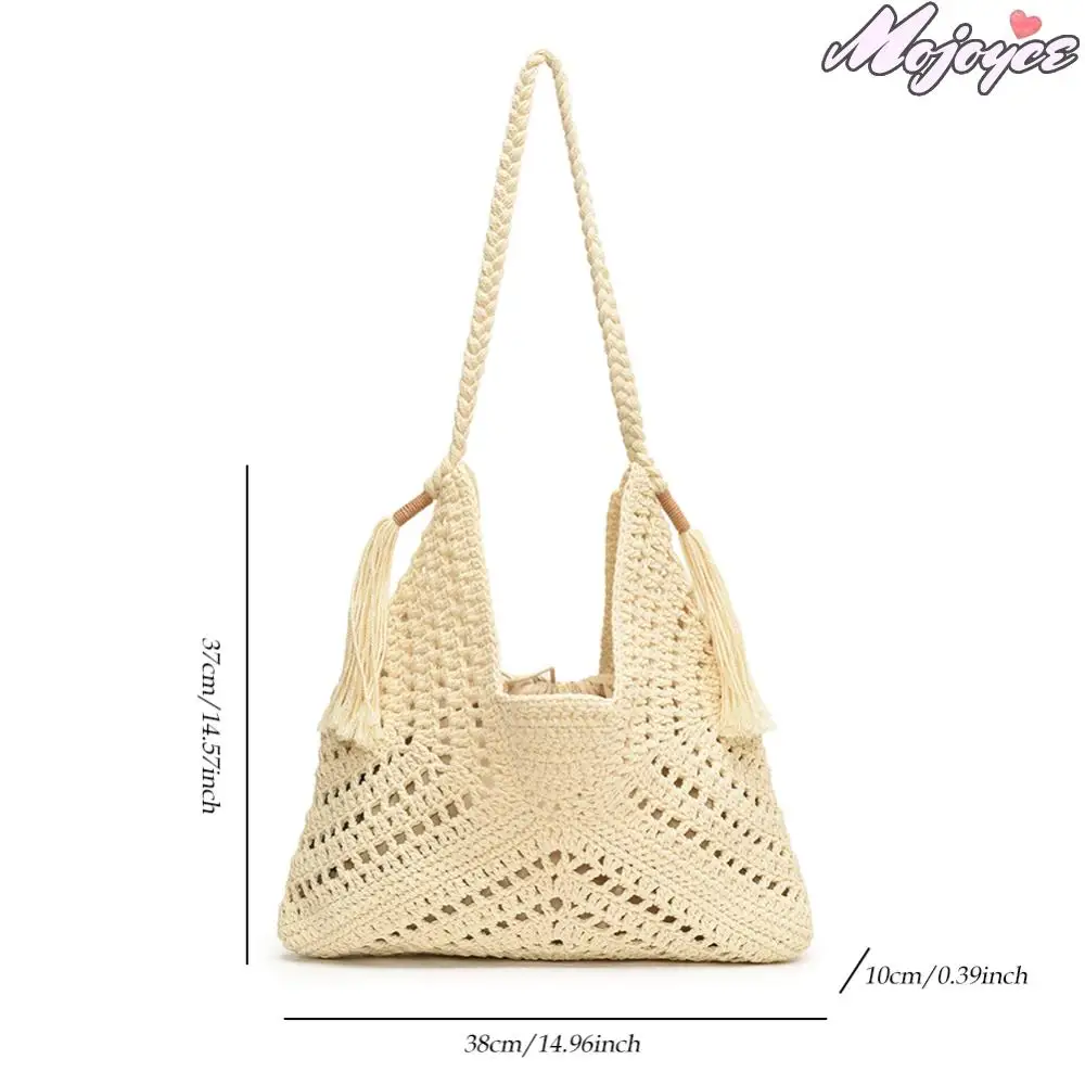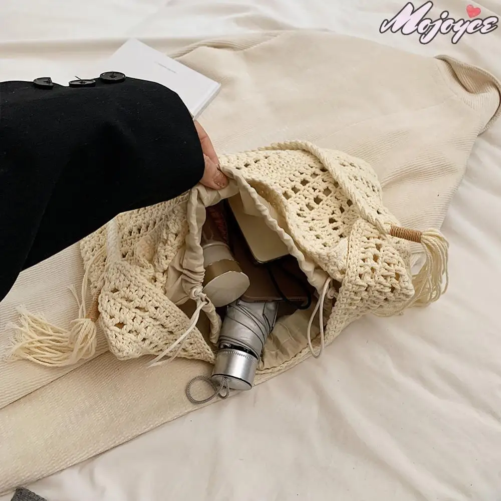 Sacs de paille Boho pour femmes, avec cordon de serrage, sac de plage en tricot, couleur unie, sac à main de vacances, grande capacité, sac à main tissé d'été |