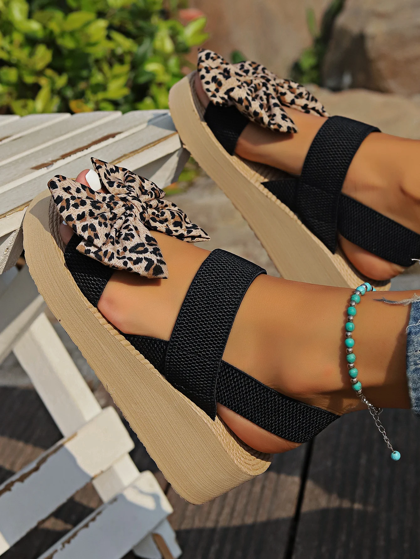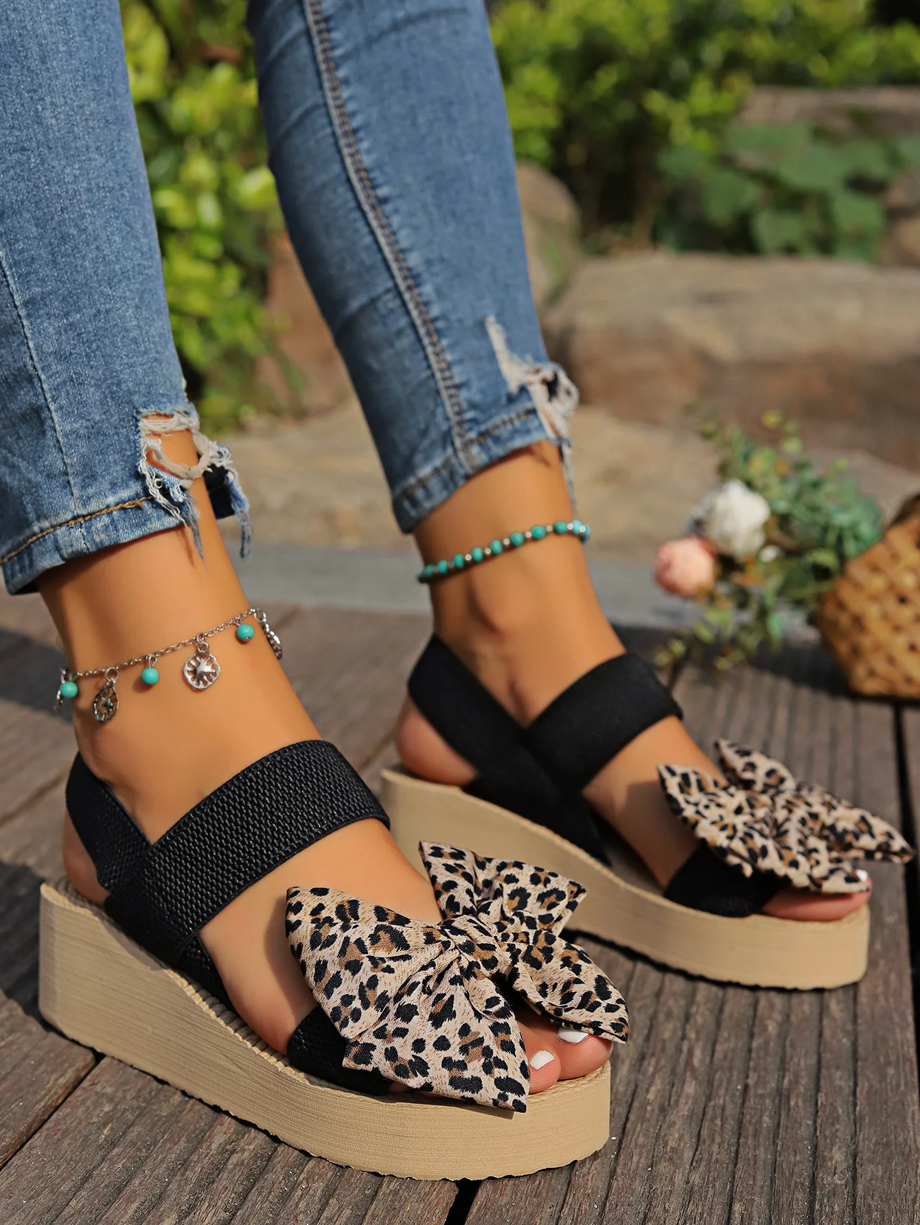 Sandales à semelle épaisse compensée pour femmes, Sexy, imprimé léopard, nœud, pour les déplacements quotidiens, plage, fête, loisirs, mode, sandales polyvalentes |