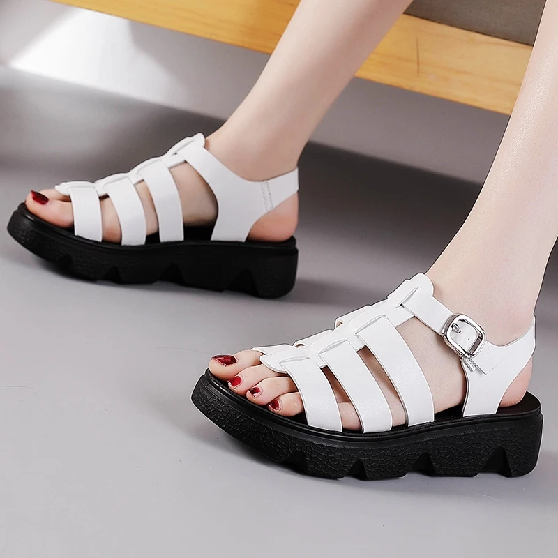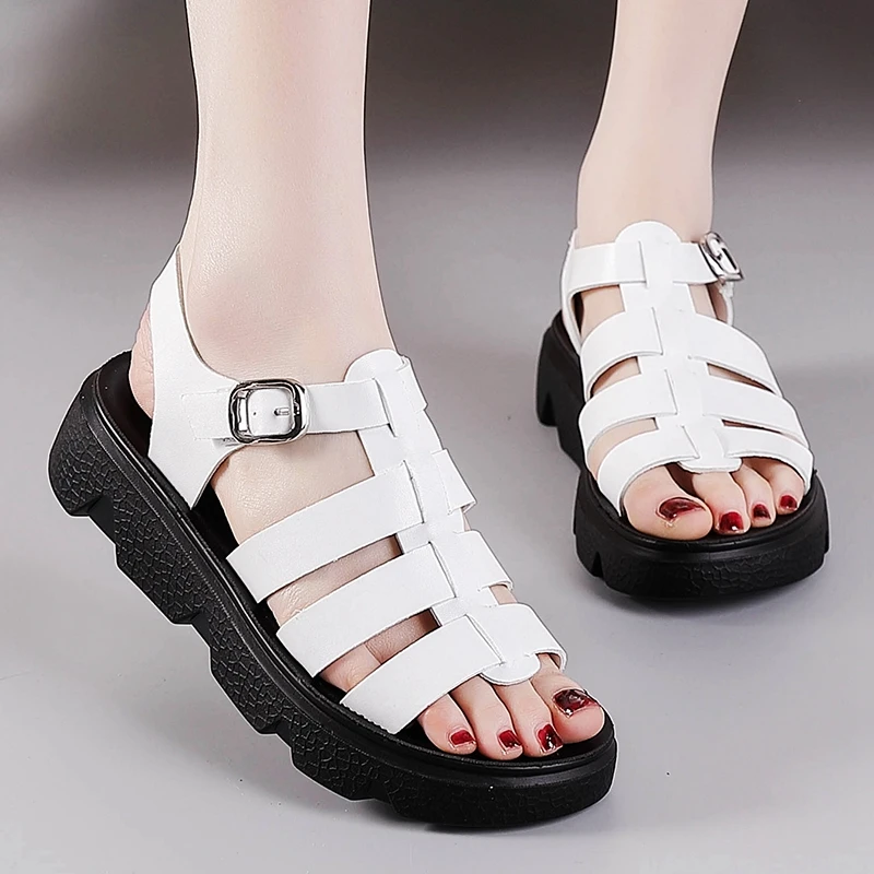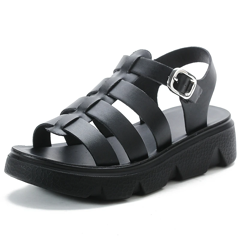 Sandales à talons bas pour femmes, chaussures de marche décontractées, sandales de plage en cuir souple, chaussures de travail légères pour mères, été, nouveau |
