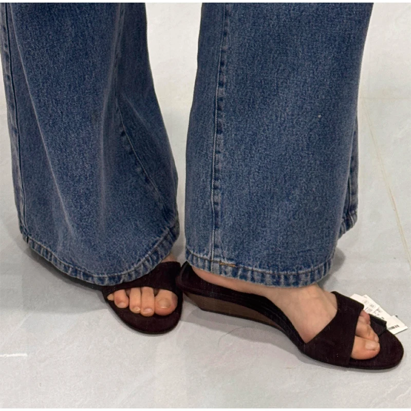 Sandales à talons compensés en daim pour femmes, pantoufles d'extérieur de styliste, mode d'été, élégantes, luxe, simples, chaussures de Banquet haut de gamme |