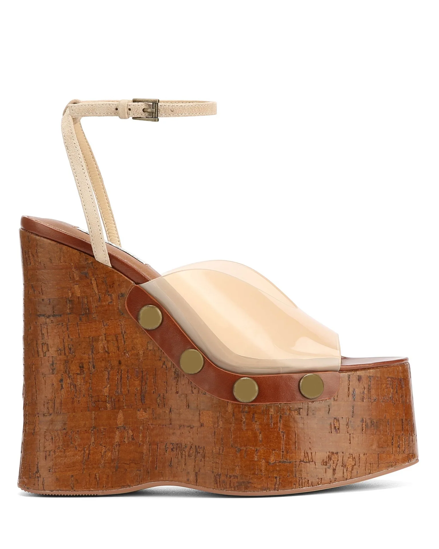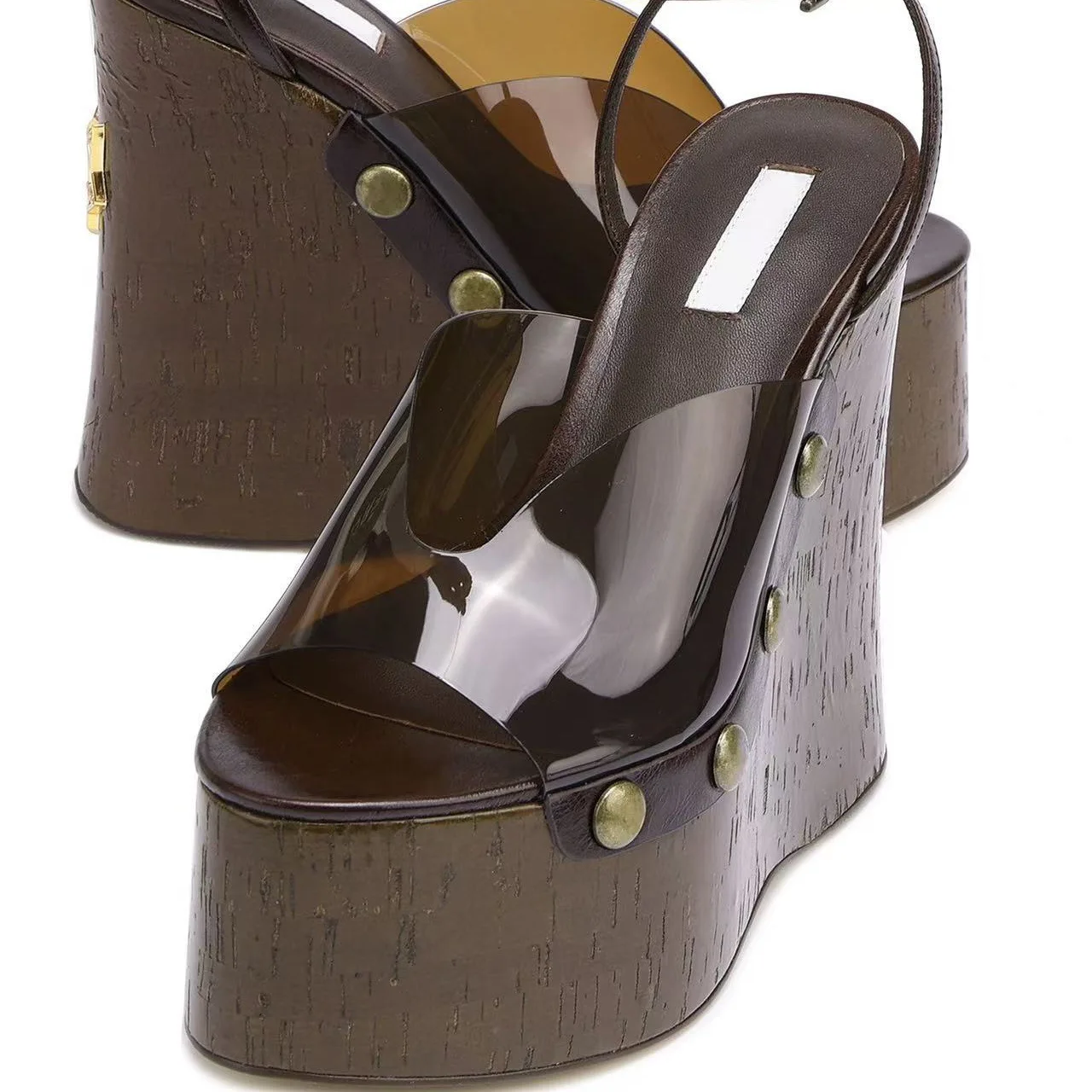 Sandales à talons hauts de 14 cm d’épaisseur pour femmes, sandales de Table imperméables à semelles épaisses en Grain de bois, chaussures à boucle à ongles en métal