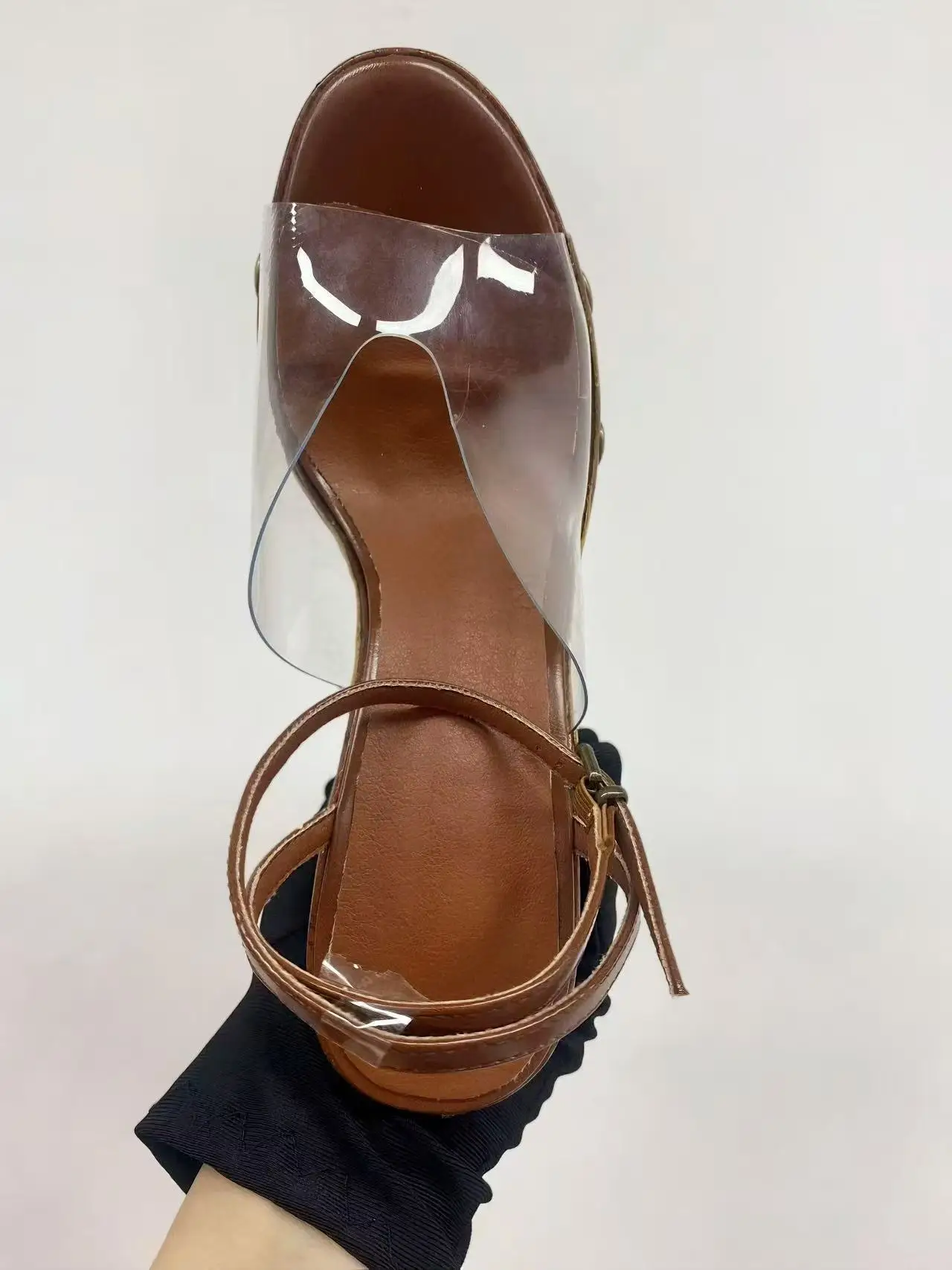 Sandales à talons hauts de 14 cm d'épaisseur pour femmes, sandales de Table imperméables à semelles épaisses en Grain de bois, chaussures à boucle à ongles en métal |