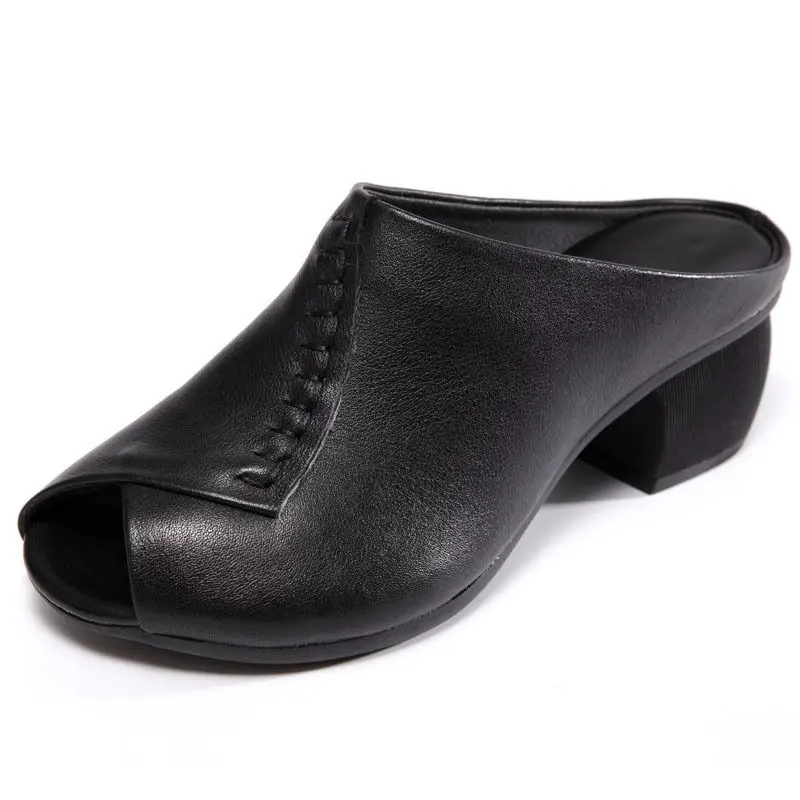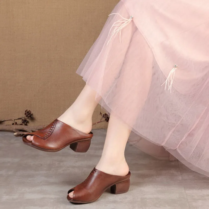 Sandales à Talons Mi-Hauts pour Femme, Chaussures à Bout Ouvert, en Cuir Microcarence, Noir et Marron, Design Original, à la Mode, Été 2021, Livraison Directe |