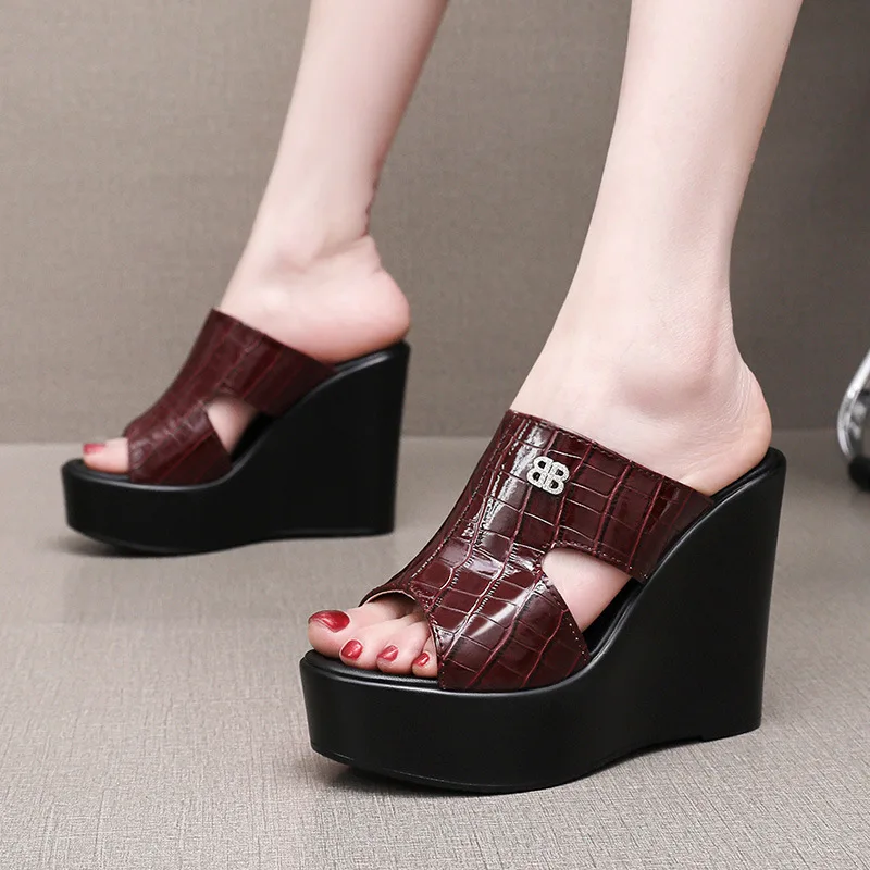 Sandales compensées en cuir d’été de haute qualité pour femmes 6cm 8cm 10cm talon haut 2025 33 34 bout ouvert chaussure de mode élégante blanc rouge