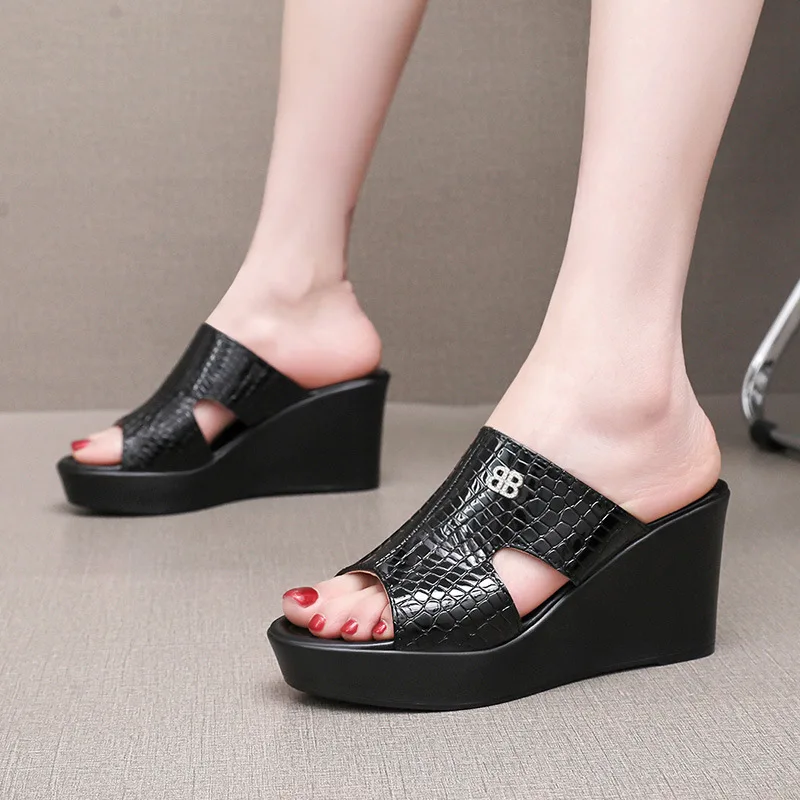 "Ces sandales compensées en cuir sont tout simplement magnifiques ! La qualité est excellente et le confort est au rendez-vous, même avec un talon de 8 cm. J'ai adoré le look élégant et tendance de ces chaussures. Le seul petit bémol est que les premiers jours, il m'a fallu un peu de temps pour m'habituer au talon, mais maintenant je les porte tout le temps. Je recommande vivement ce produit à toutes les femmes à la recherche de sandales d'été chics et confortables."