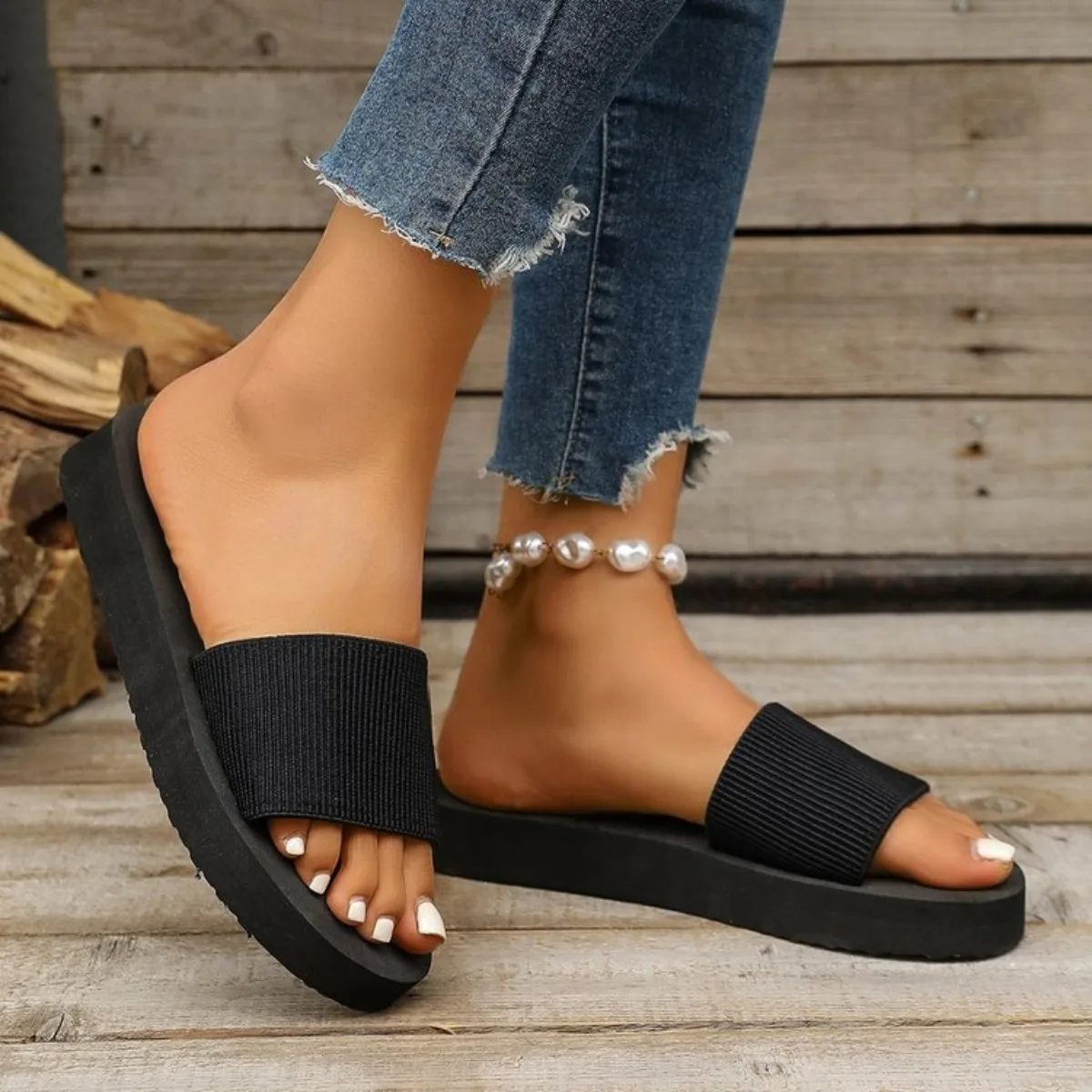 Sandales coulissantes plates de luxe pour femmes, noires, mode d'été en plein air, élégantes, Sexy, décontractées, bureau, fête, légères, confortables, plate-forme fraîche |