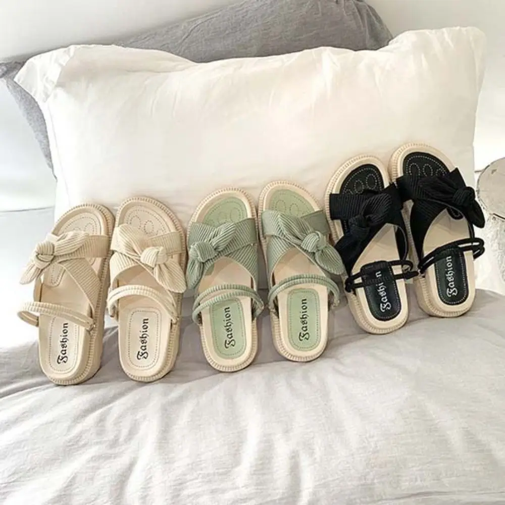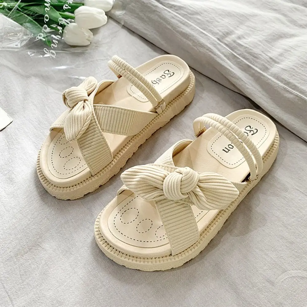 Sandales décontractées 2 en 1 à semelles épaisses, pantoufles d’été à bout ouvert avec nœud papillon, chaussures pour femmes, pantoufles de plage élégantes pour bord de mer