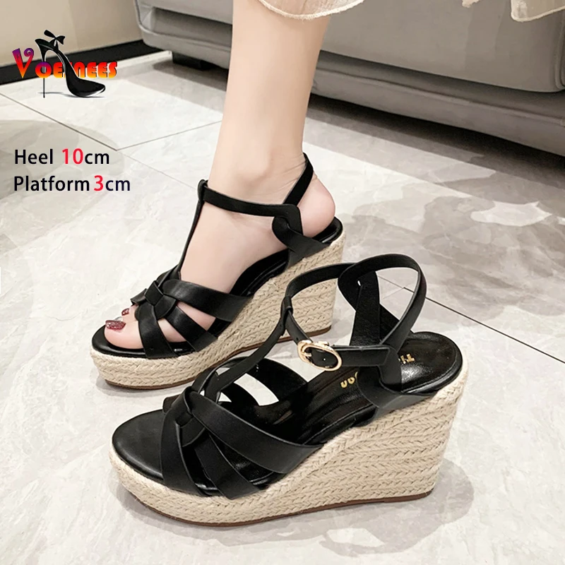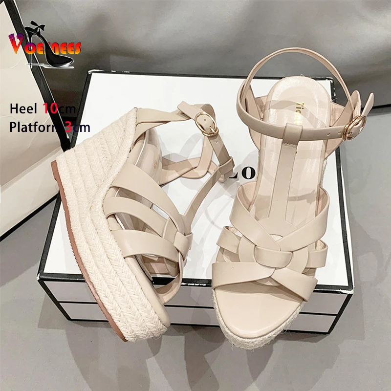 Sandales d'été à semelle compensée pour femmes, talons hauts de 10cm, sangle de rinçage, grosses chaussures décontractées astronomiques, taille 34-40, nouvelle collection 2024 |