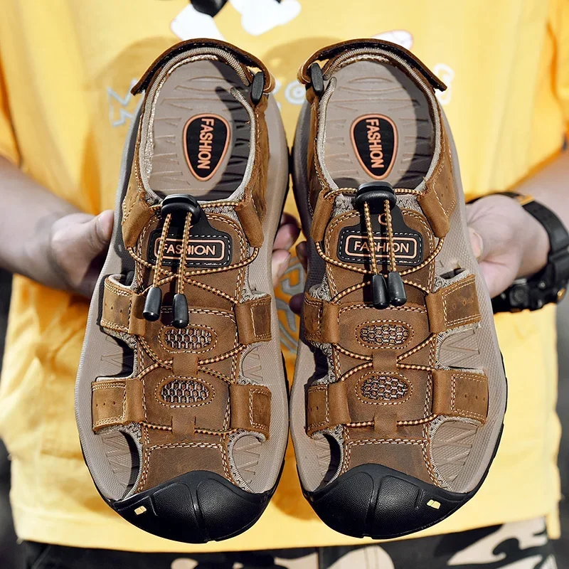 Sandales d'Été en Cuir pour Homme, Chaussures de Plage de Luxe, Respirantes, Décontractées, Pataugeoire, Pantoufles à Doublure Large |