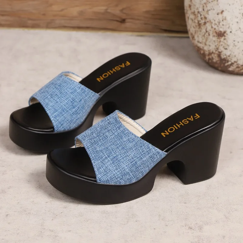 Sandales d’été pour femmes, nouvelles chaussures à talons hauts à la mode de Style coréen, pantoufles à semelles épaisses pour femmes, 2023