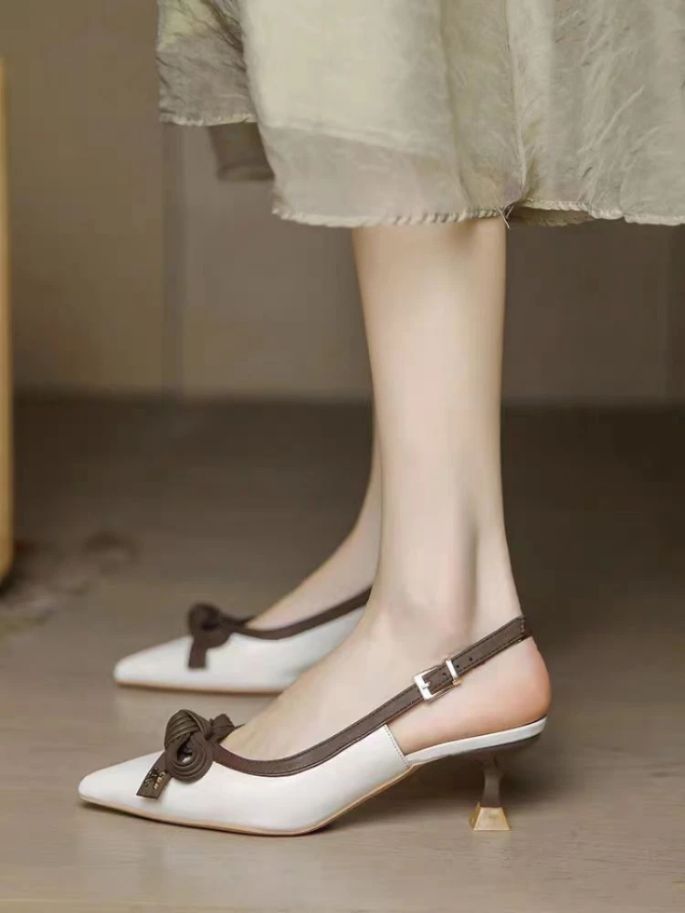 Sandales fermées pour femme été 2025 chaussures Sexy nœud bout pointu avec talons bas H confort Chic et élégant chaussures pour femmes quotidiennes |