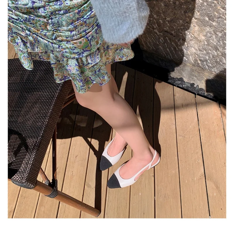 Sandales françaises élégantes à talons bas pour femmes, chaussures simples classiques abricot noir, couleur assortie, confortables, nouvelle collection 2025
