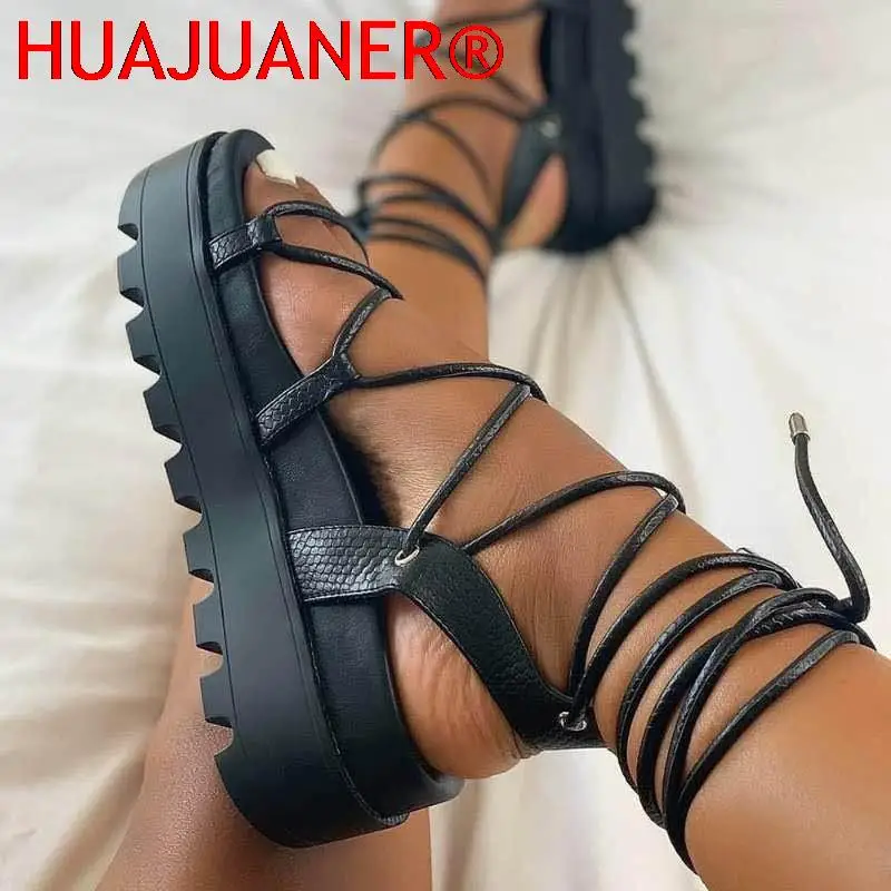 Sandales gladiateur à lacets pour femmes, chaussures à plateforme compensée, bottes à bretelles croisées, optiques, mode astronomique